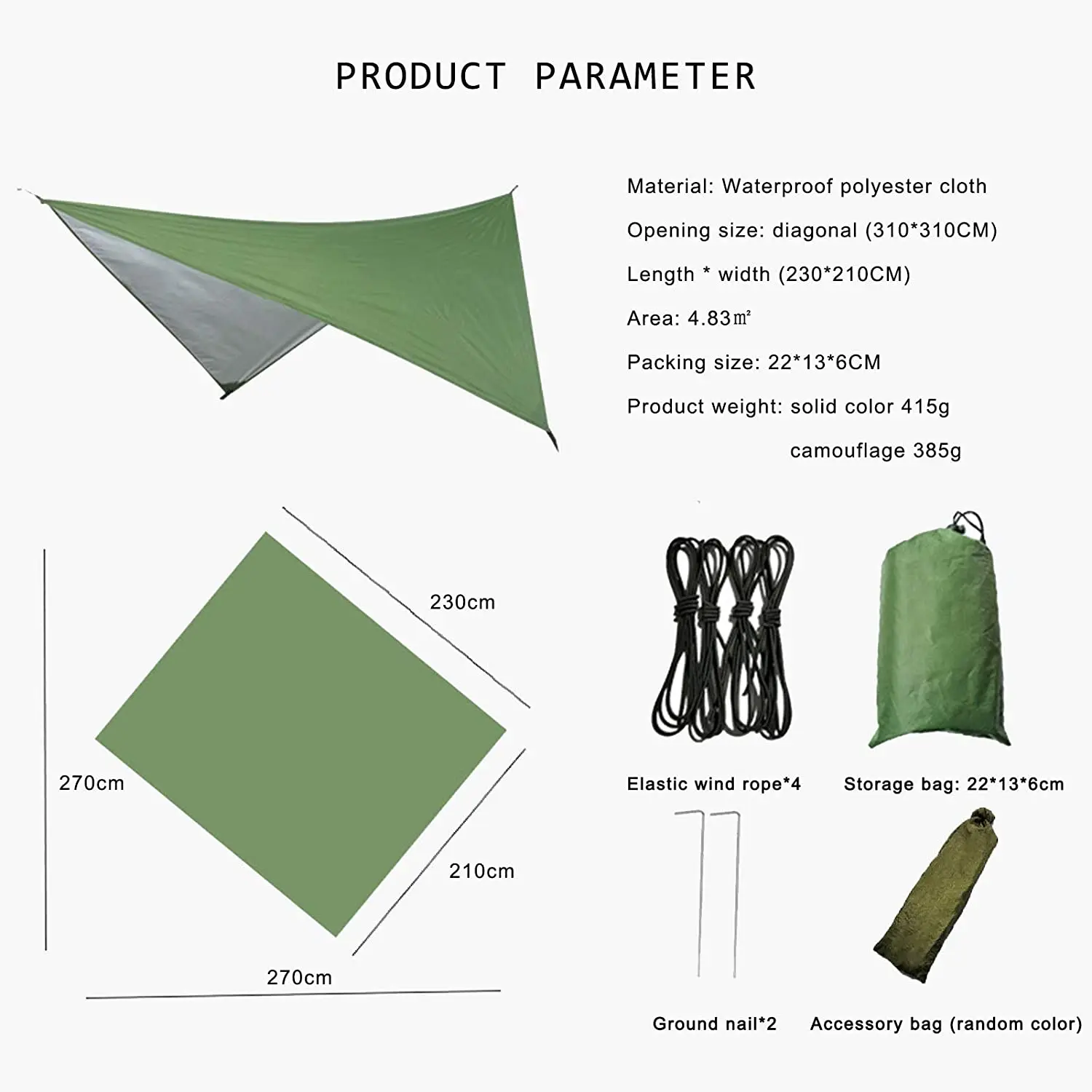 Hammock Rain Fly Tent Tarp Waterproof Windproof Camping Shelter Sunshade Portable Beach Sun Shelter Camping Tent for Camping
